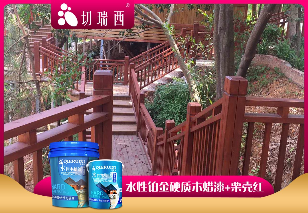 案例介紹:戶外木棧道,涼亭和葡萄架以及家具等都可以使用水性漆進(jìn)行翻新保護(hù)。戶外木制品因?yàn)槭盏斤L(fēng)吹日曬雨淋的侵蝕和風(fēng)化,需要打磨后才能進(jìn)行施工。水性漆干燥速度塊,漆膜飽滿豐厚,可以防水防腐,保護(hù)木制品不受自然風(fēng)雨的侵蝕。施工時可以選擇刷涂或者噴涂,如有需要可以加水稀釋,比例不能超過8%。