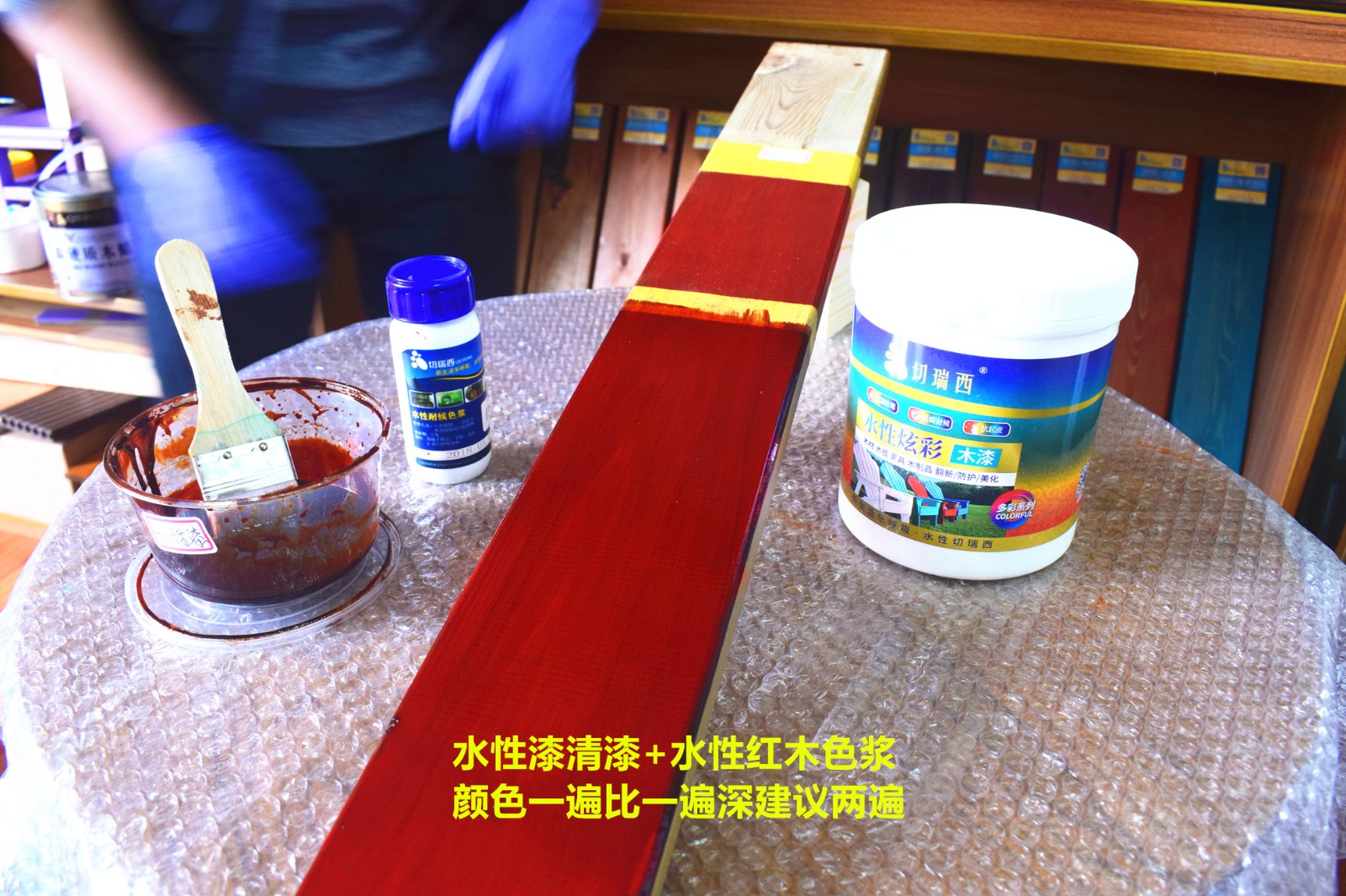 使用產(chǎn)品:水性漆凈味木漆和水性炫彩木漆