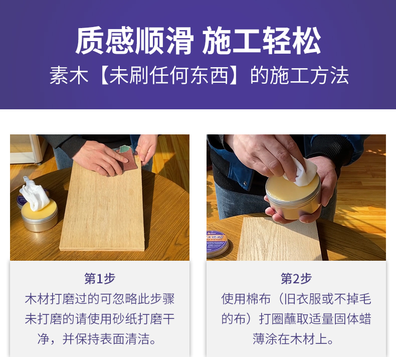 第二種:將家具表面用濕毛巾擦干凈,然后通風(fēng)晾干兩小時;通風(fēng)干燥后可直接使用美林涂料固體保養(yǎng)蠟擦涂。將家具處理完成后,將固體蠟打開,然后用干凈的棉布或海綿沾取固體蠟;在家具或地板表面“轉(zhuǎn)圈”式打蠟即可,施工一遍不要做的太厚。打蠟完成后等待3小時左右即可。